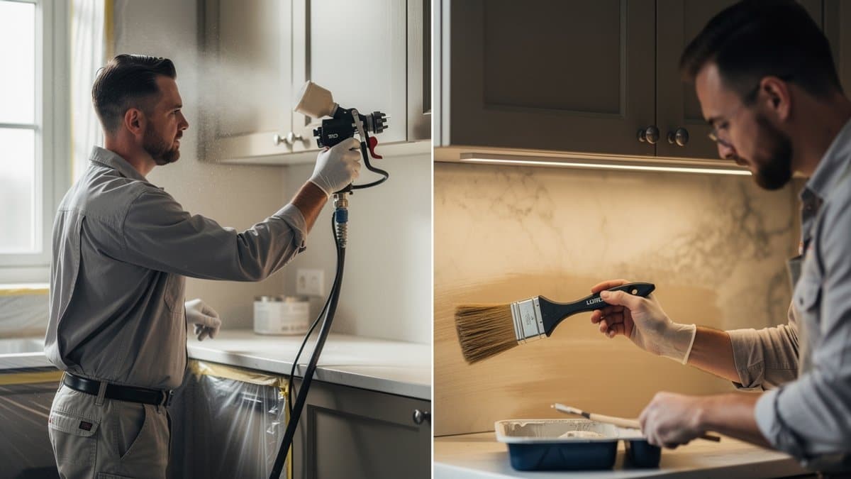 How do I decide between spray vs brush cabinet painting for my kitchen?
