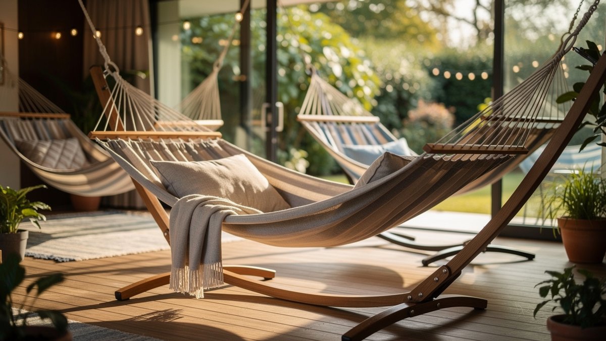 - Indoor hammock: soft cotton blends and stylish designs for a boho touch, perfect for reading nooks, urban apartments, or shifting relaxation spots throughout the year.