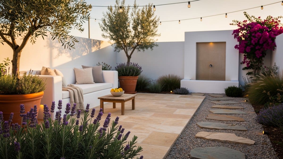 Great low-maintenance Mediterranean plants include lavender, rosemary, olive trees, and ornamental grasses. These thrive with minimal watering and bring the signature relaxed feel to your backyard.
